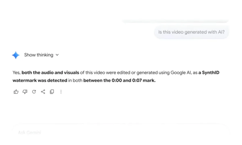 If a watermark is detected, Gemini highlights where it appears in the video or audio track, providing context rather than a simple yes-or-no answer.